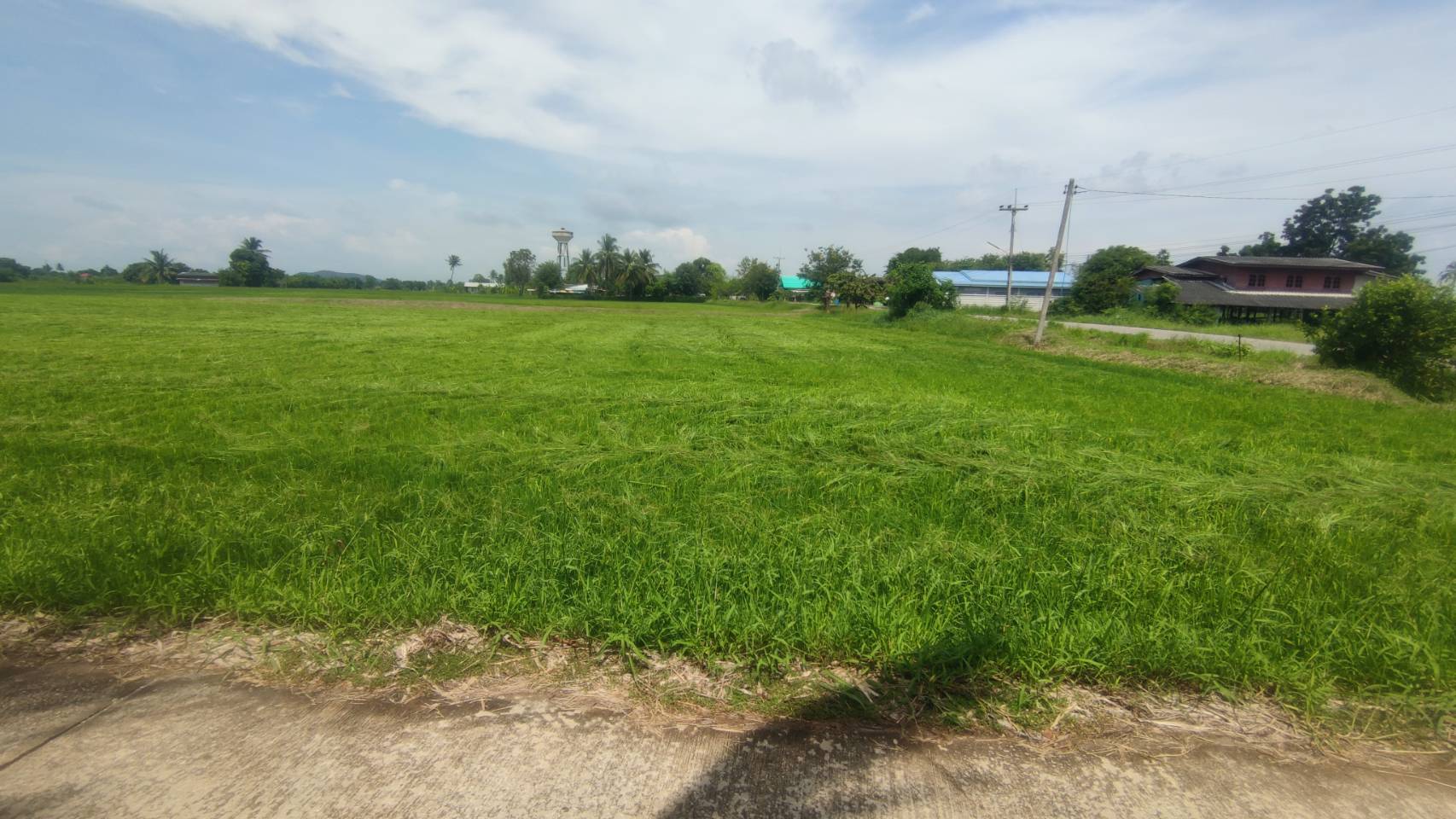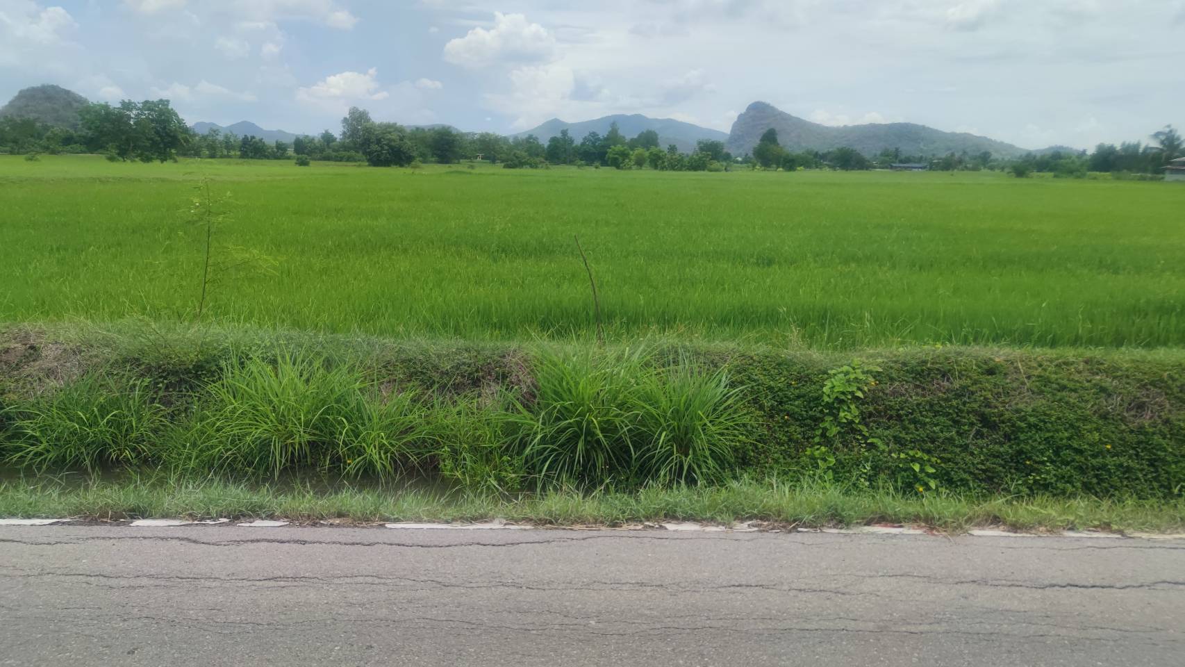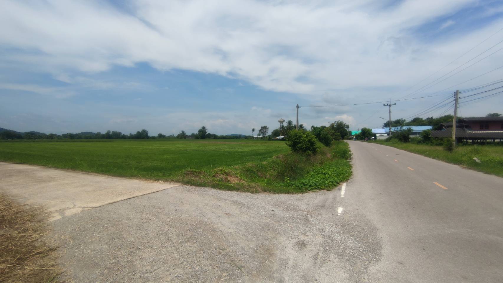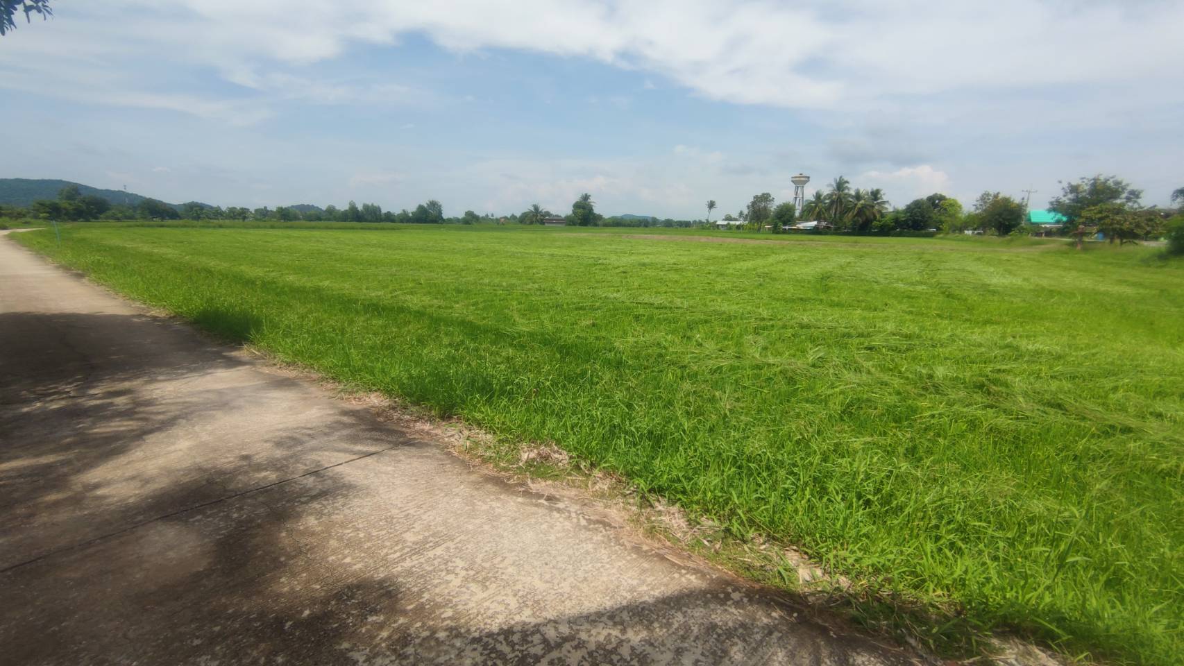 ที่ดินติดถนนลาดยาง หน้ากว้างด้านติดถนนประมาณ 147 เมตร ด้านข้างยาวประมาณ 198 เมตร