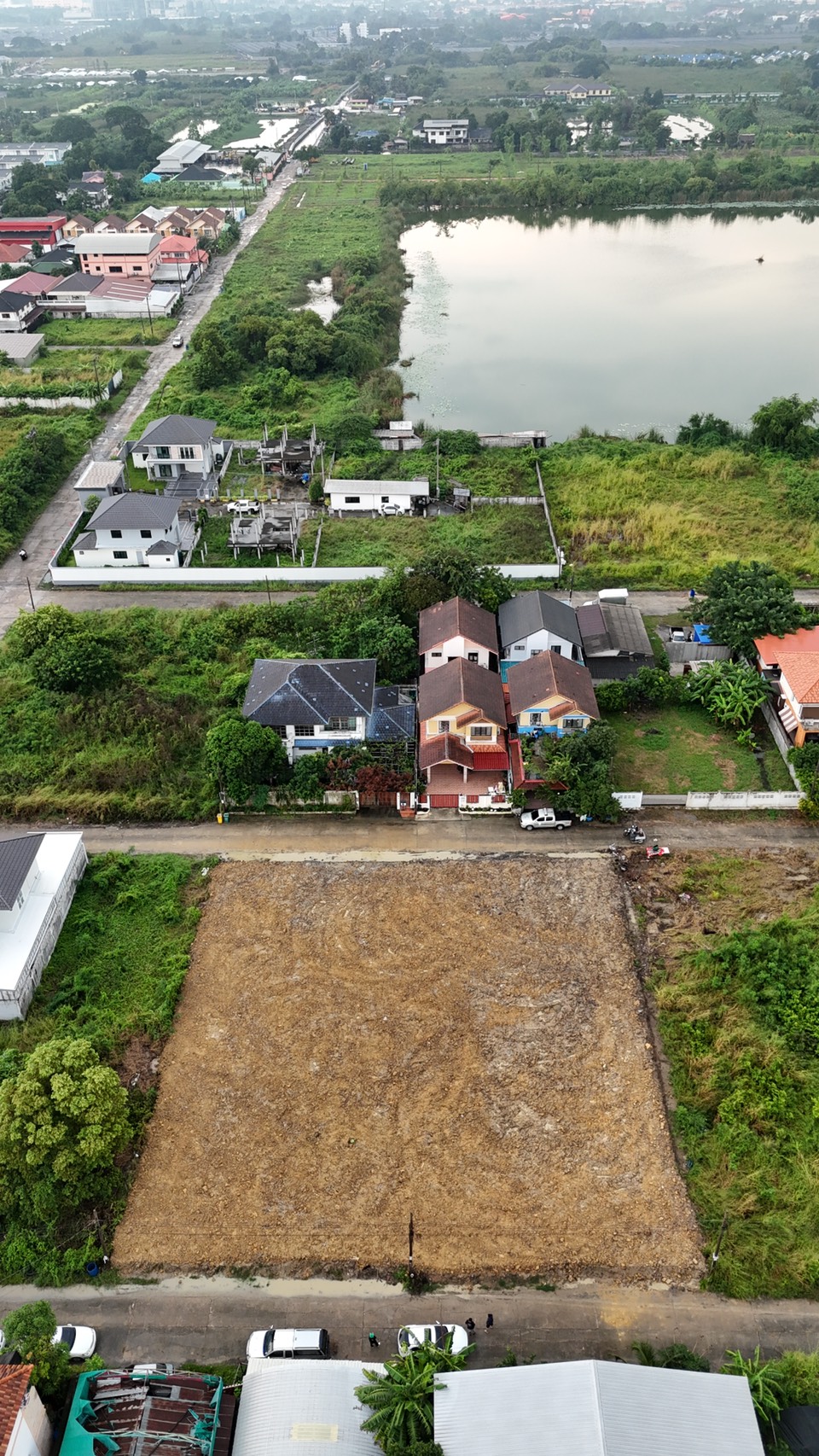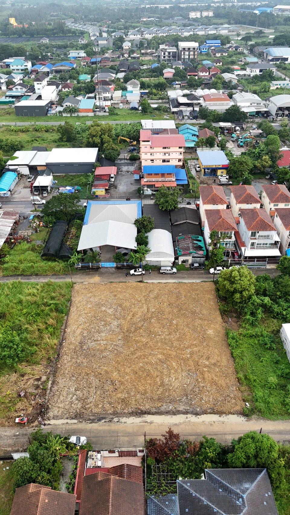 หน้ากว้างด้านติดถนนประมาณ 40 เมตร ด้านข้างยาวประมาณ 40 เมตร ถมดินเรียบร้อยแล้ว