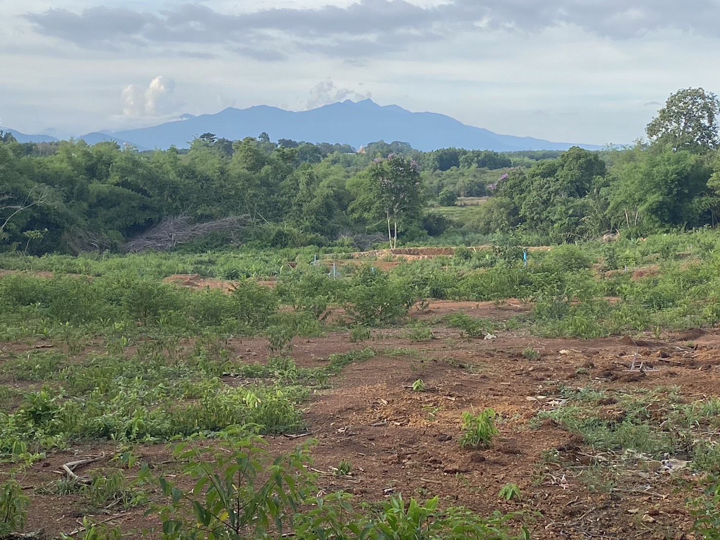 ที่ดินมีลักษณะเป็นเนิน มองเห็นวิวพื้นราบด้านหลังและทิวเขา