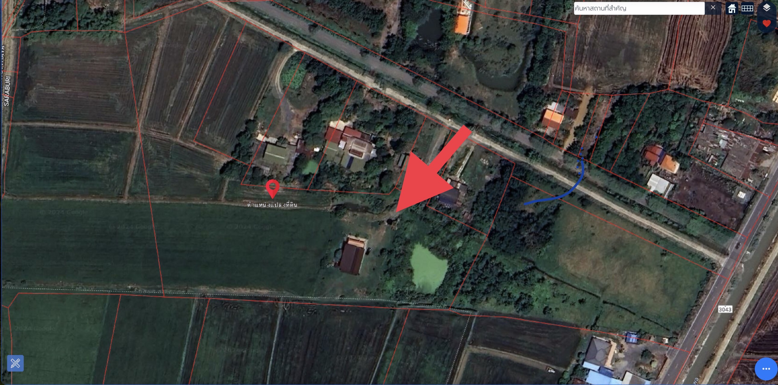 ด้านหลังเป็นวิวทุ่งนาห่างจากถนนเส้น 3043 เพียง 400 เมตร