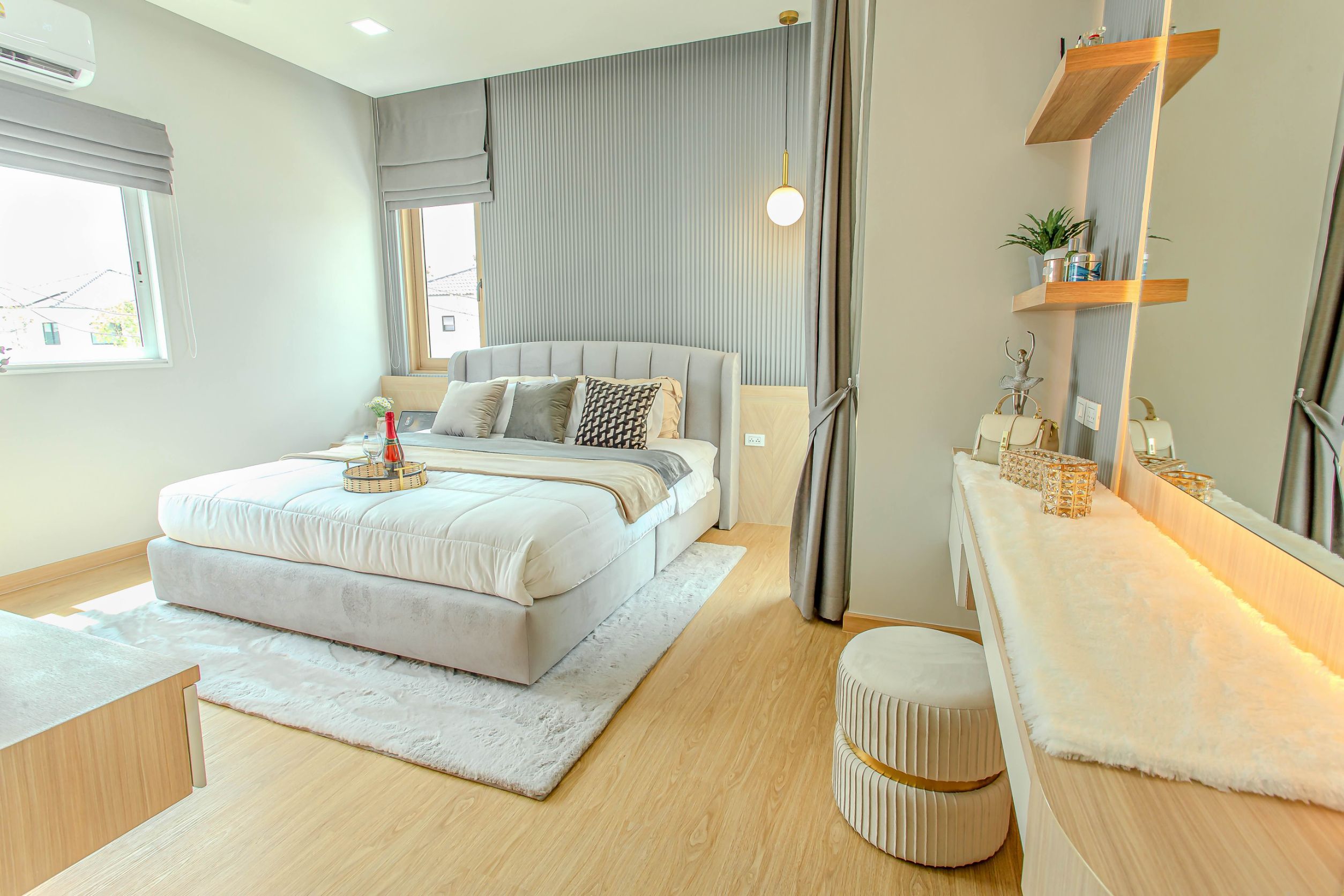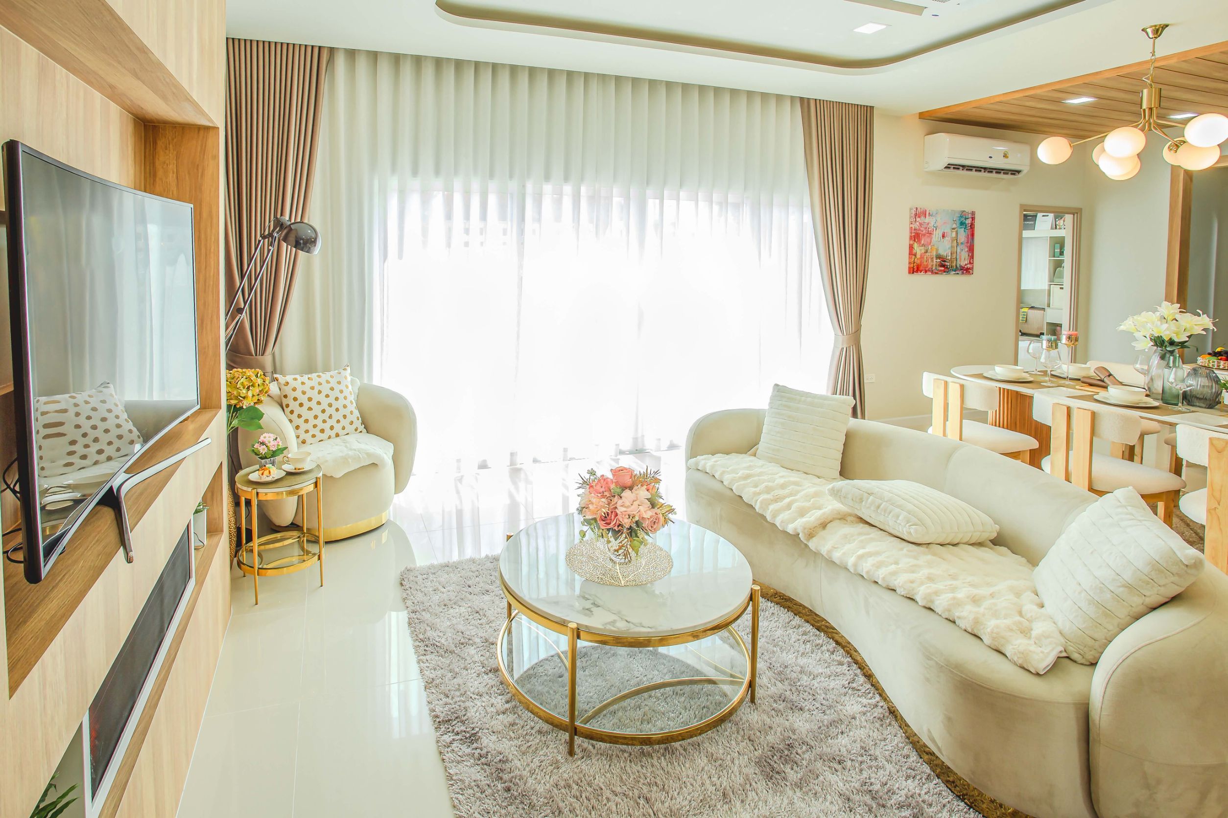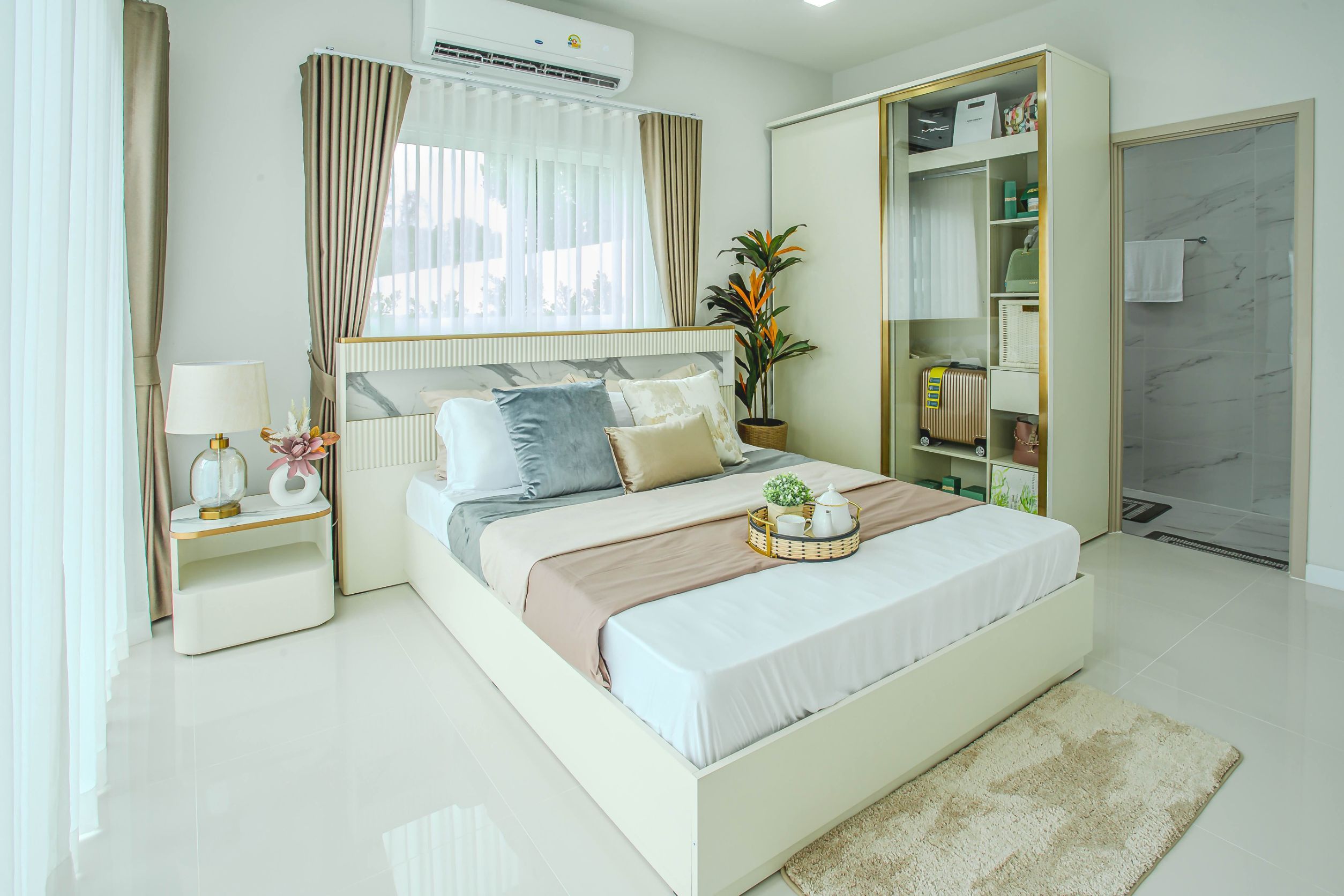 พร้อมเฟอร์นิเจอร์ตกแต่งทั้งหลัง, ม่าน, และแอร์ครบชุด