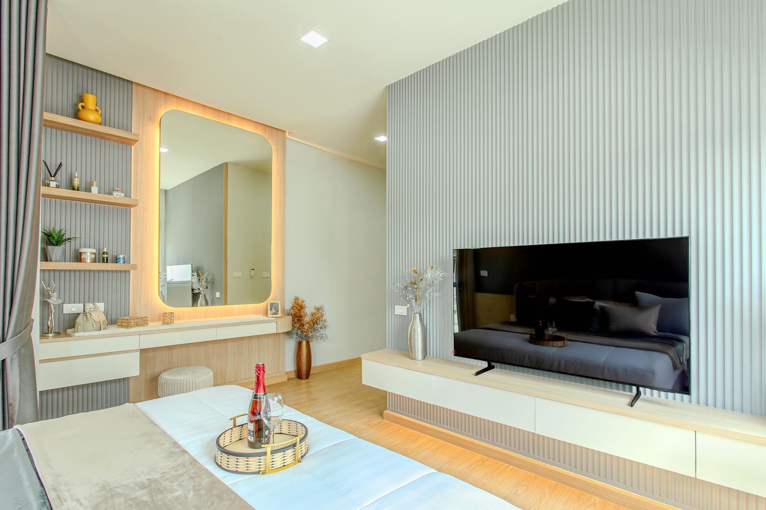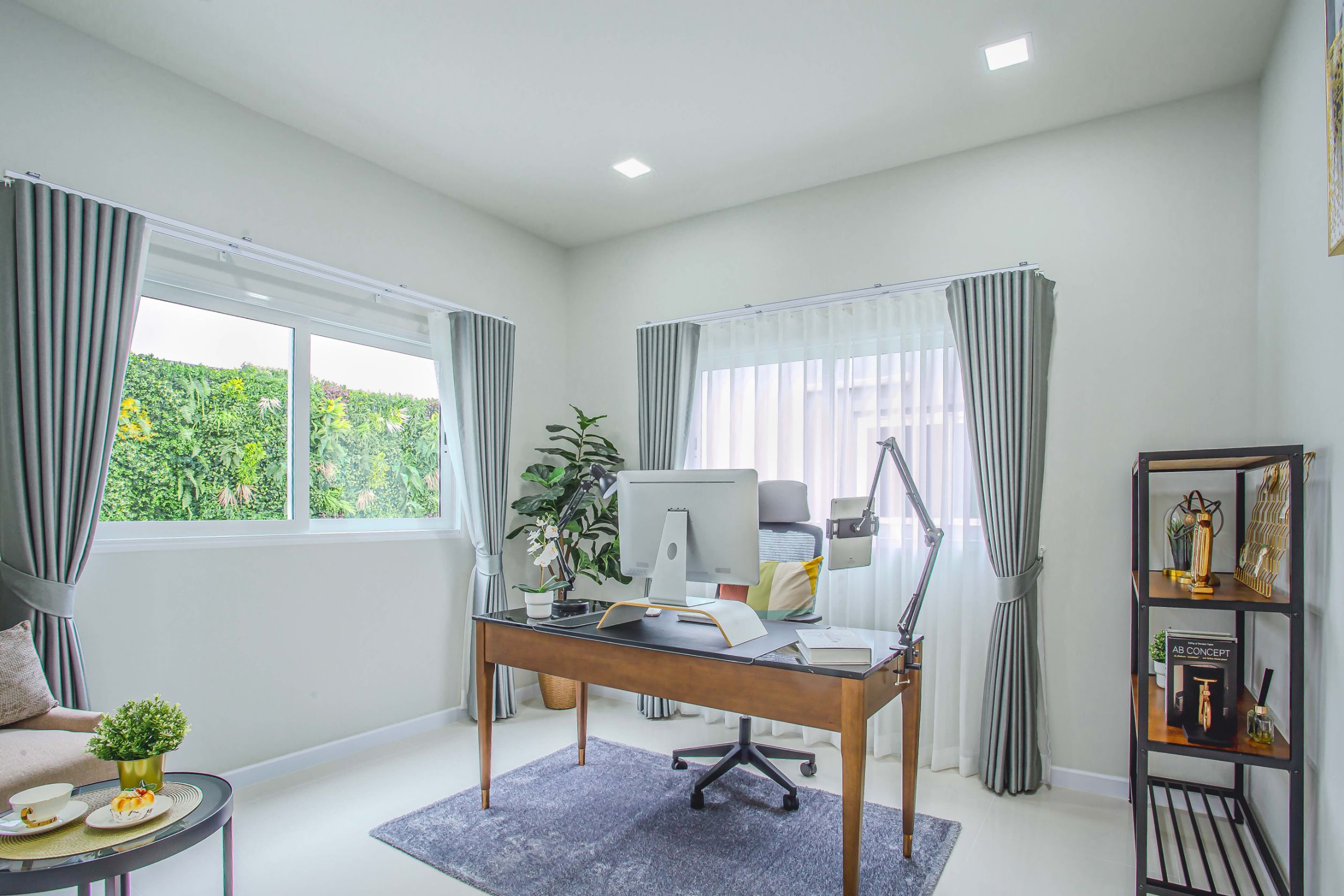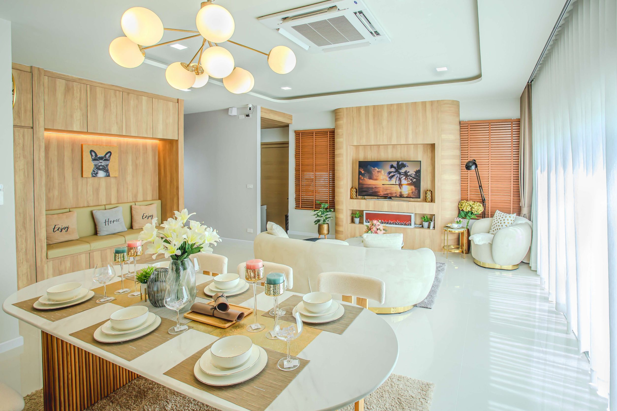 พร้อมเฟอร์นิเจอร์ตกแต่งทั้งหลัง, ม่าน, และแอร์ครบชุด