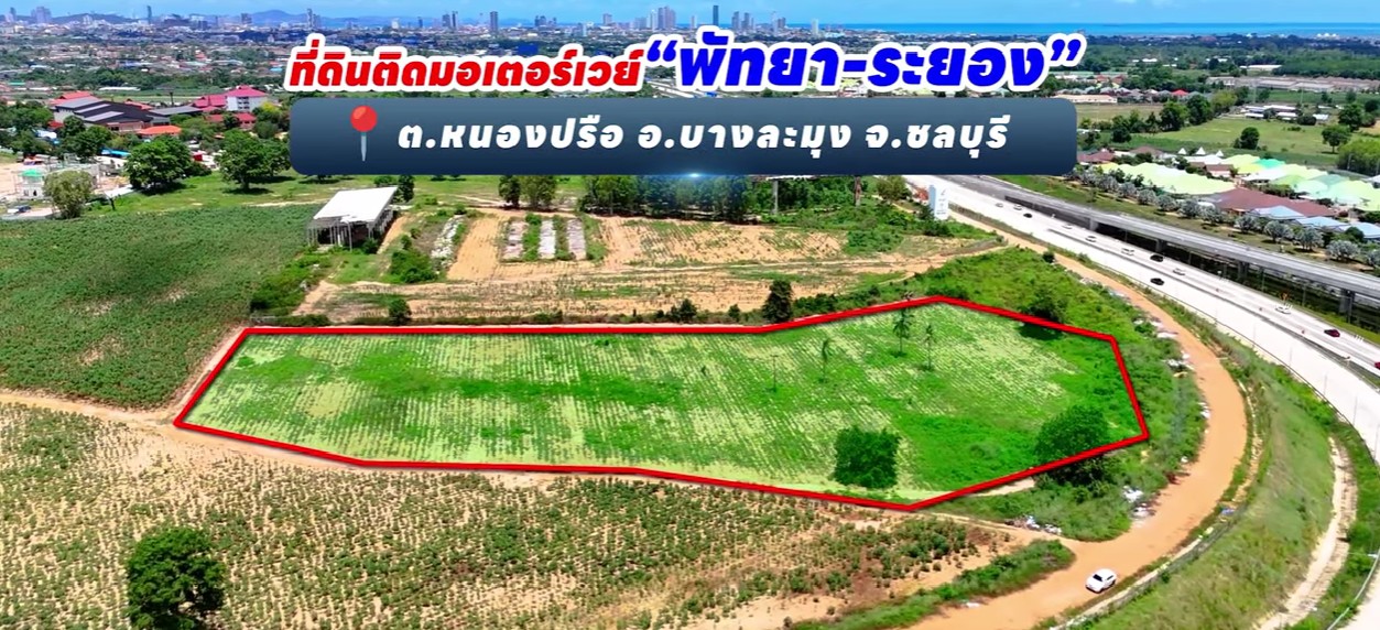 ขายที่ดิน 8 ไร่ พัทยา ติดถนนมอเตอร์เวย์ พัทยา-ระยอง ต.หนองปรือ อ.บางละมุง จ.ชลบุรี