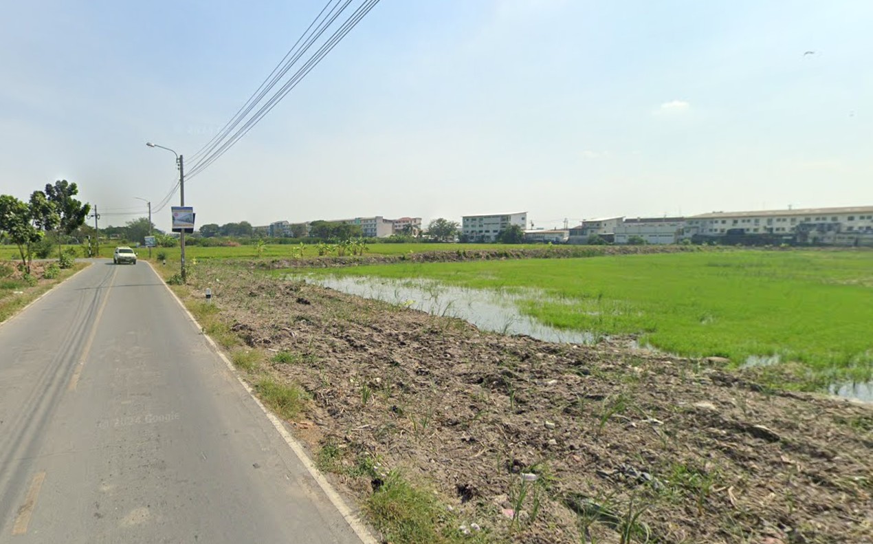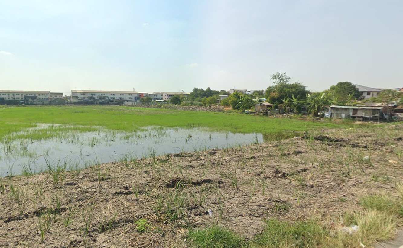 หน้ากว้างด้านติดถนนประมาณ 90 เมตร อยู่ติดกับหมู่บ้านบัวทองธานี