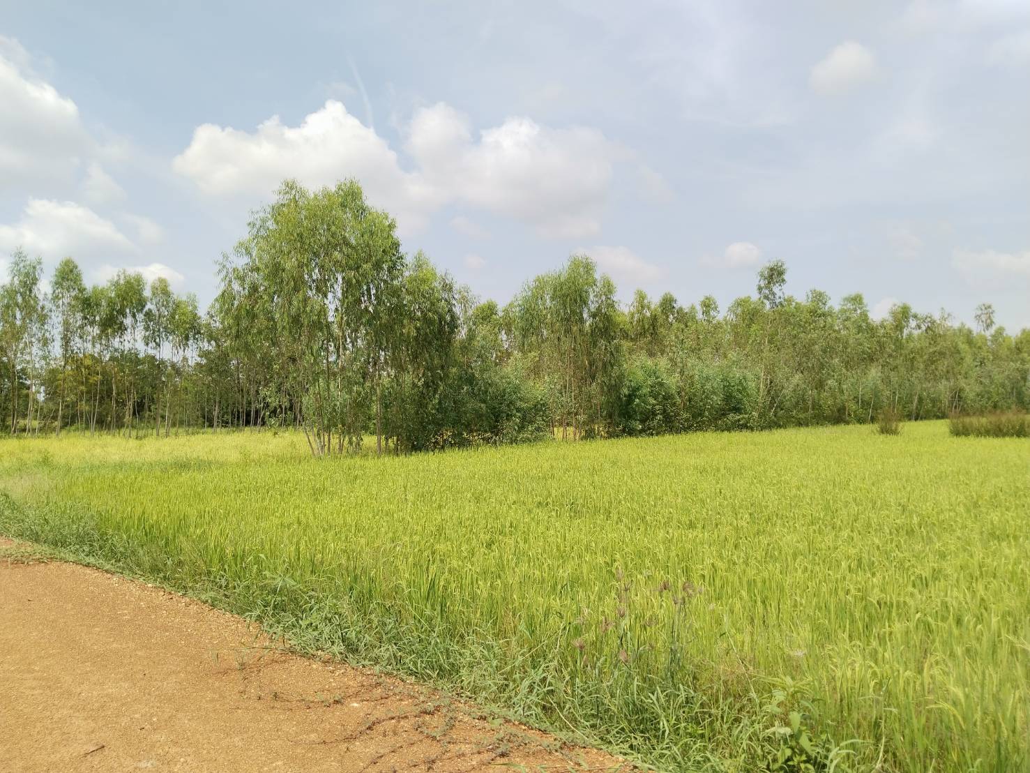 ที่ดินติดถนนลาดยาง หน้ากว้างด้านติดถนนประมาณ 112 เมตร ยาวประมาณ 288 เมตร ด้านหลังกว้างประมาณ 125 เมตร