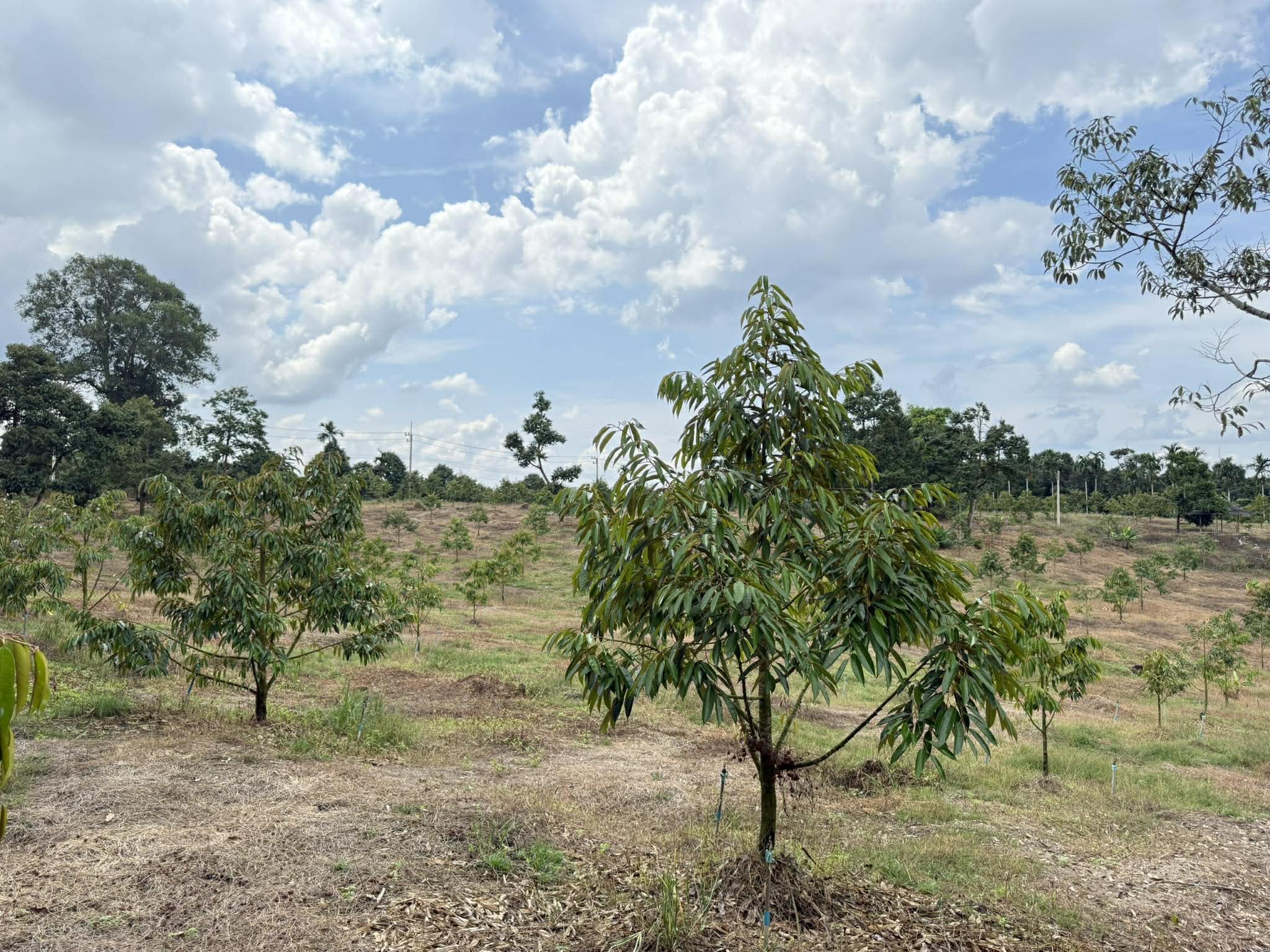 สวนทุเรียนติดถนน ปลูกทุเรียนหมอนทองทั้งแปลง