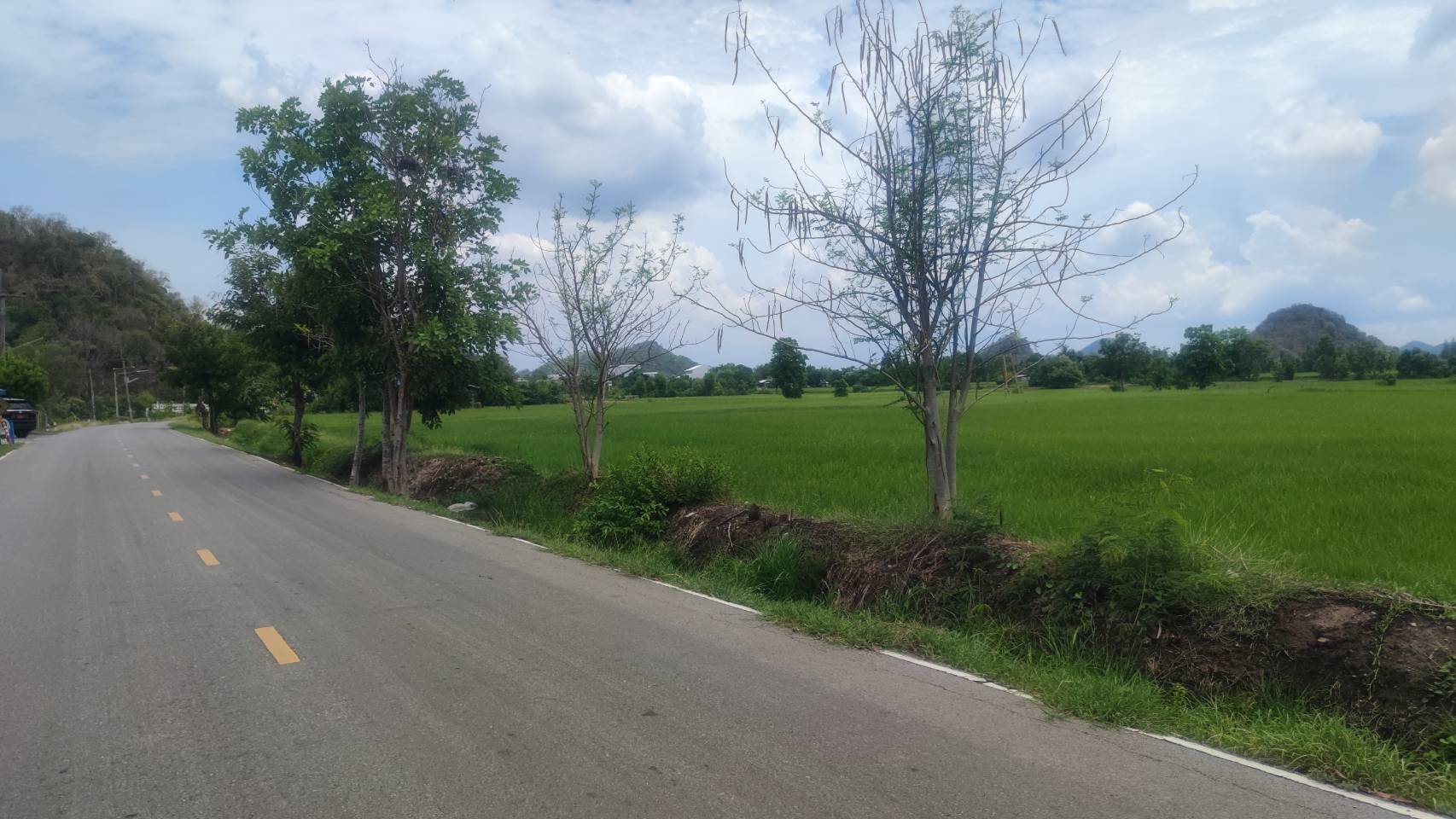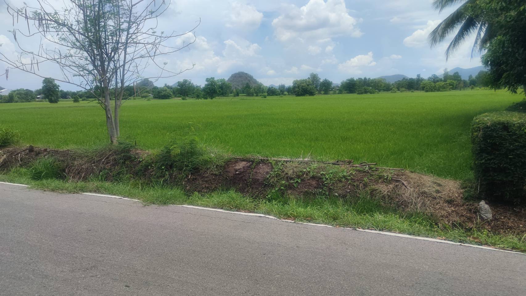 ที่ดินติดถนนลาดยาง หน้ากว้างด้านติดถนนประมาณ 147 เมตร ด้านข้างยาวประมาณ 198 เมตร