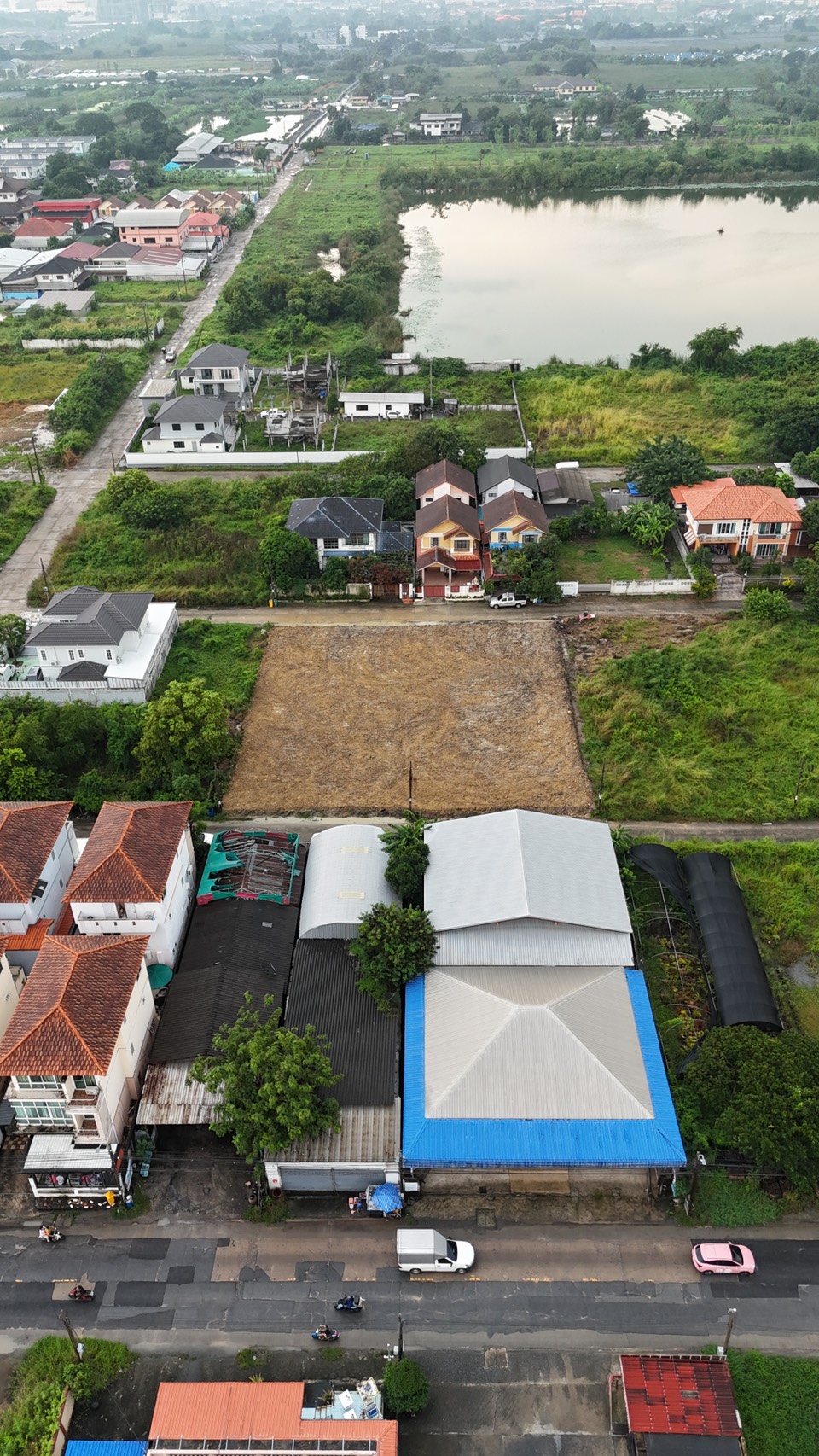 หน้ากว้างด้านติดถนนประมาณ 40 เมตร ด้านข้างยาวประมาณ 40 เมตร ถมดินเรียบร้อยแล้ว